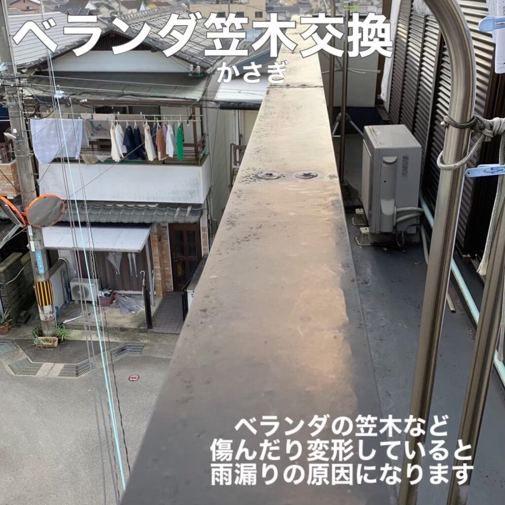 ベランダの笠木(かさぎ)や屋根の塗装はがれも