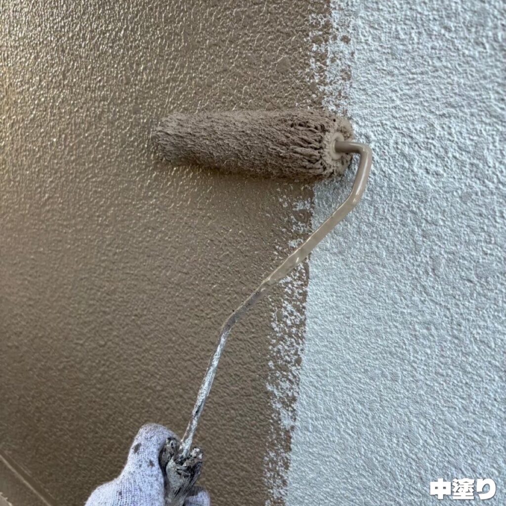 中塗りを行うことで色ムラや気泡を防いで、雨風や紫外線などから外壁を守ります。