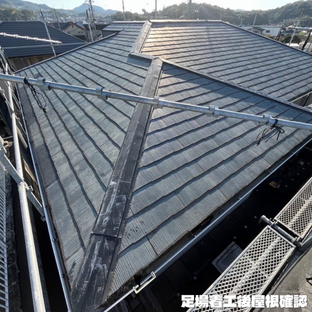 《足場着工後の屋根確認》