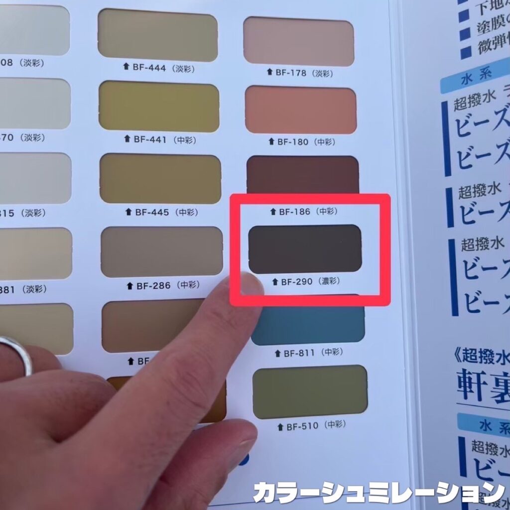今回は、外壁はクリヤーで写真で☝を指しているのは付帯部の色です💕ブラウンです!