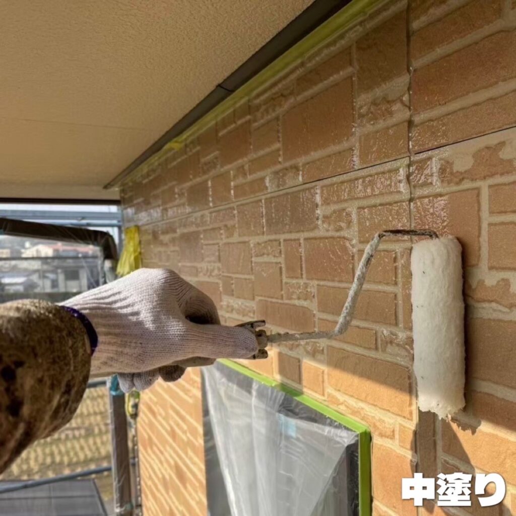 中塗りを行うことで色ムラや気泡を防いで、雨風や紫外線などから外壁を守ります。