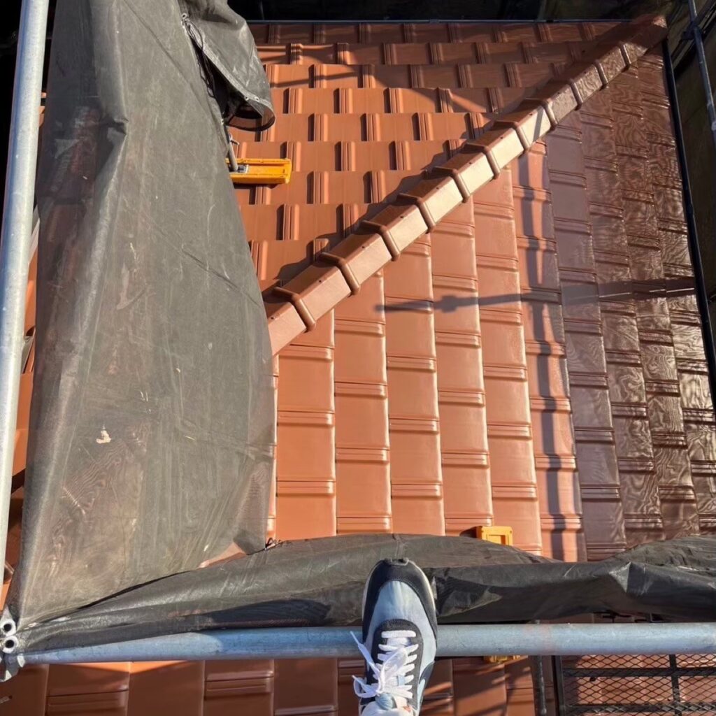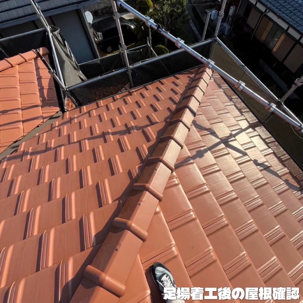 《足場着工後の屋根確認》