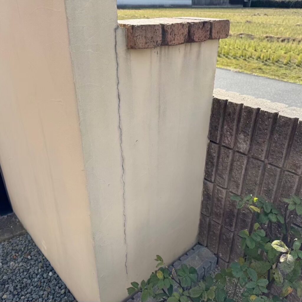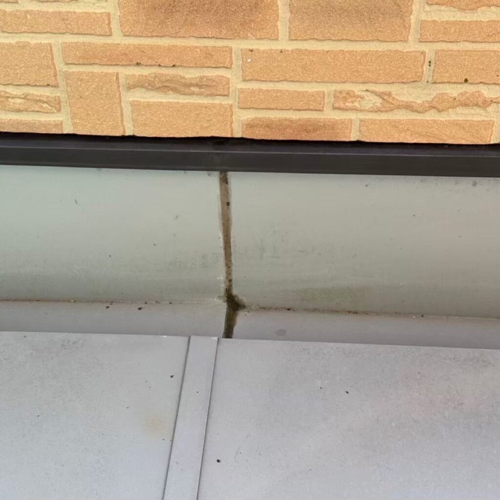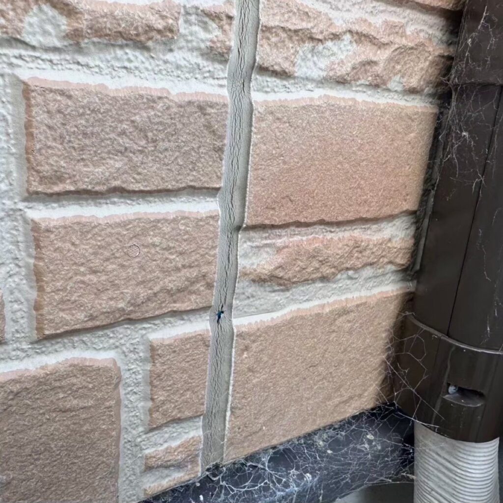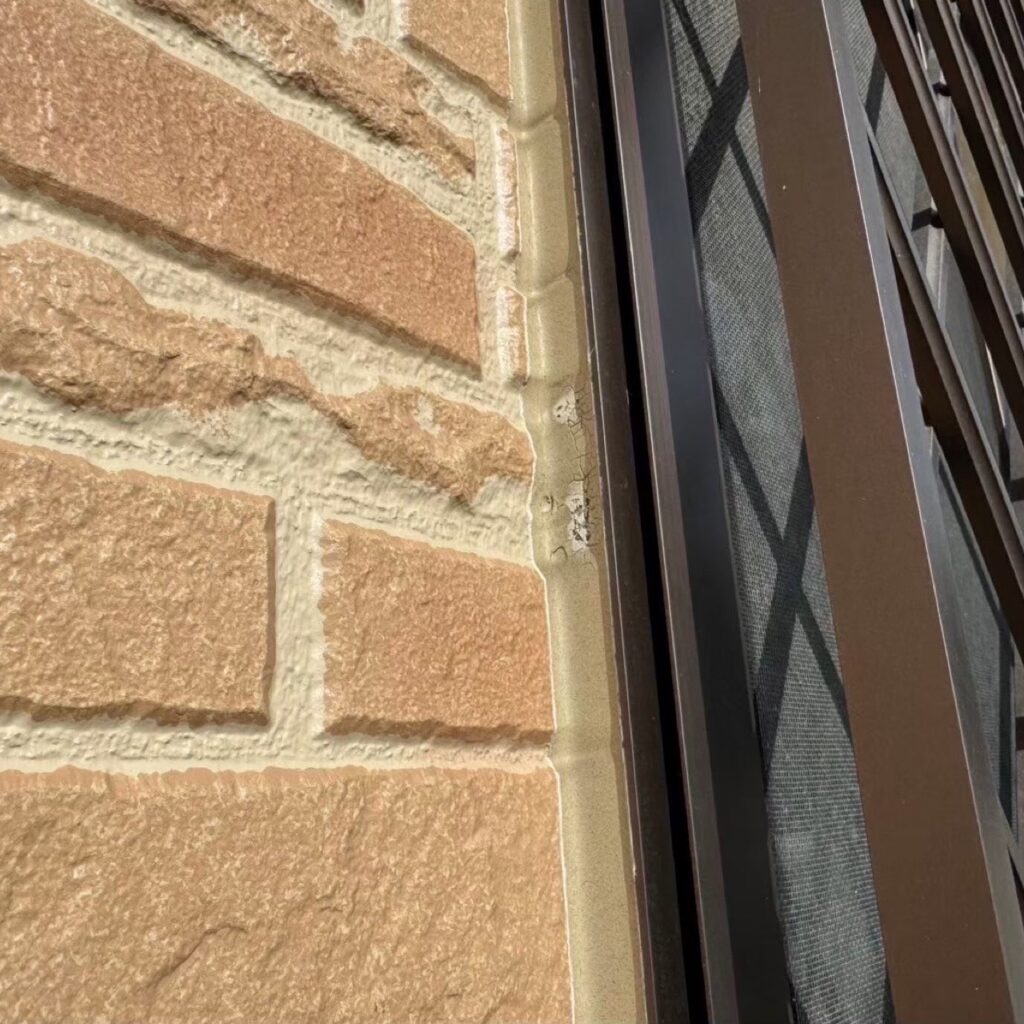 遠目から見ると綺麗なお家ですが近くで見るとコーキングの劣化、外壁の破損がありますね💦