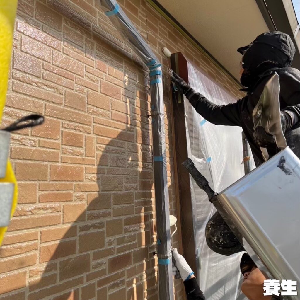 ➡外壁塗装を行う際に「塗装する箇所以外に塗料が付着しないようにビニール等でカバーすること」です。📝