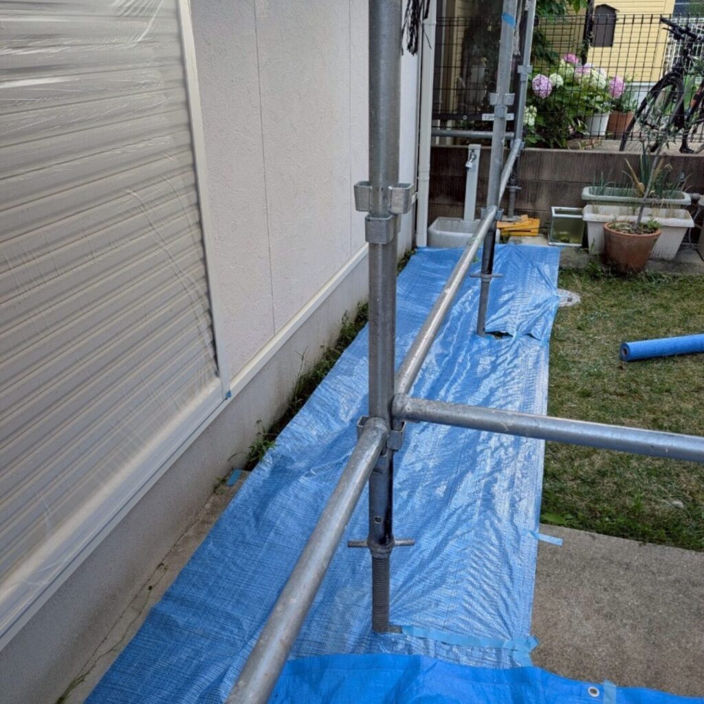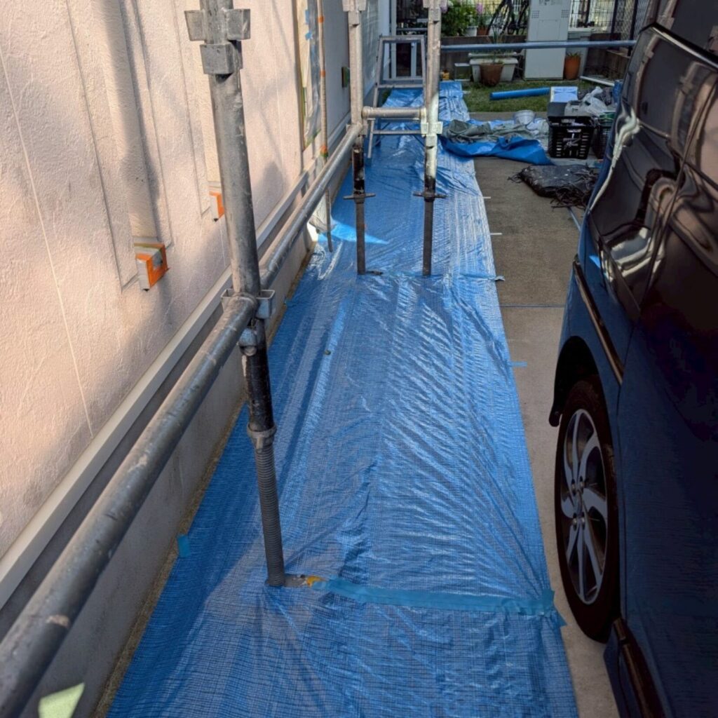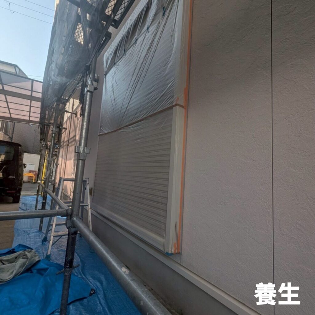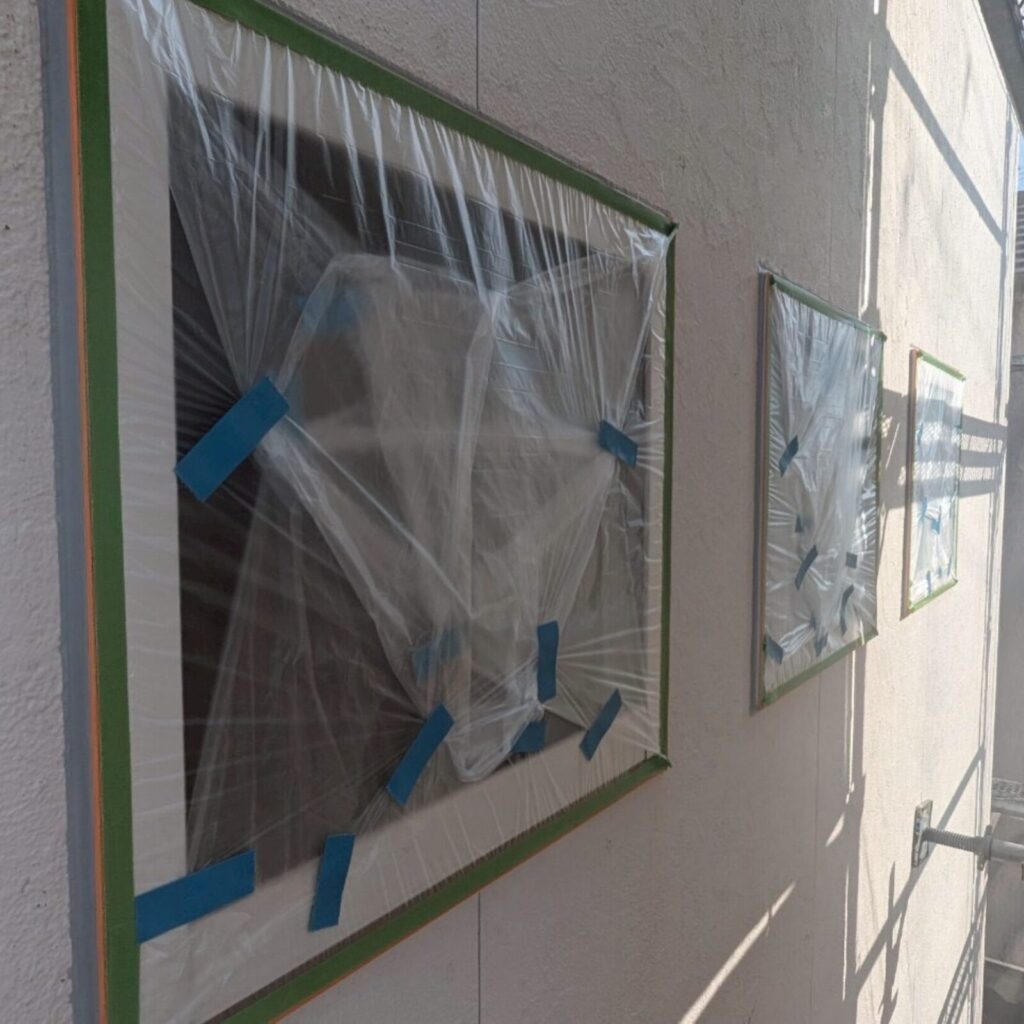 ➡外壁塗装を行う際に「塗装する箇所以外に塗料が付着しないようにビニール等でカバーすること」です。📝