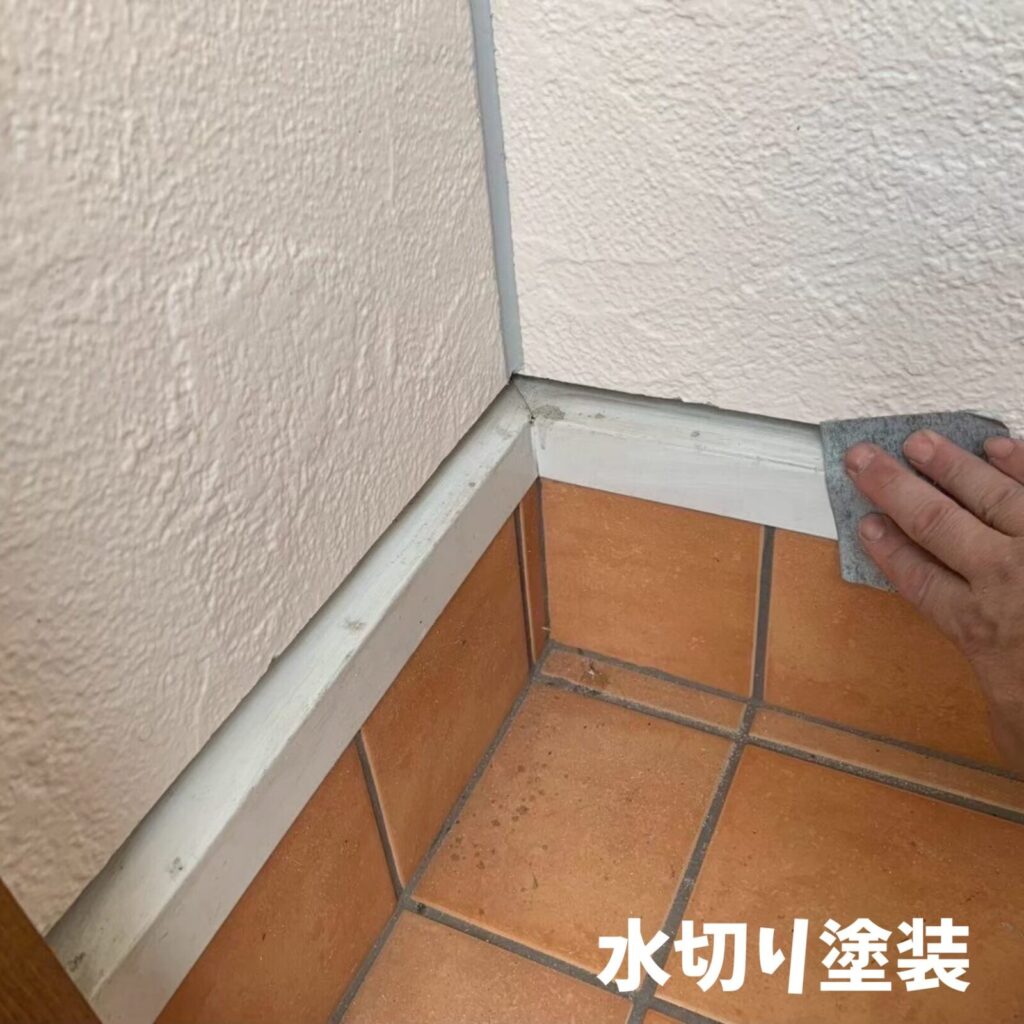上塗りと同じ塗料を使い、色ムラや艶ムラを防ぎます。