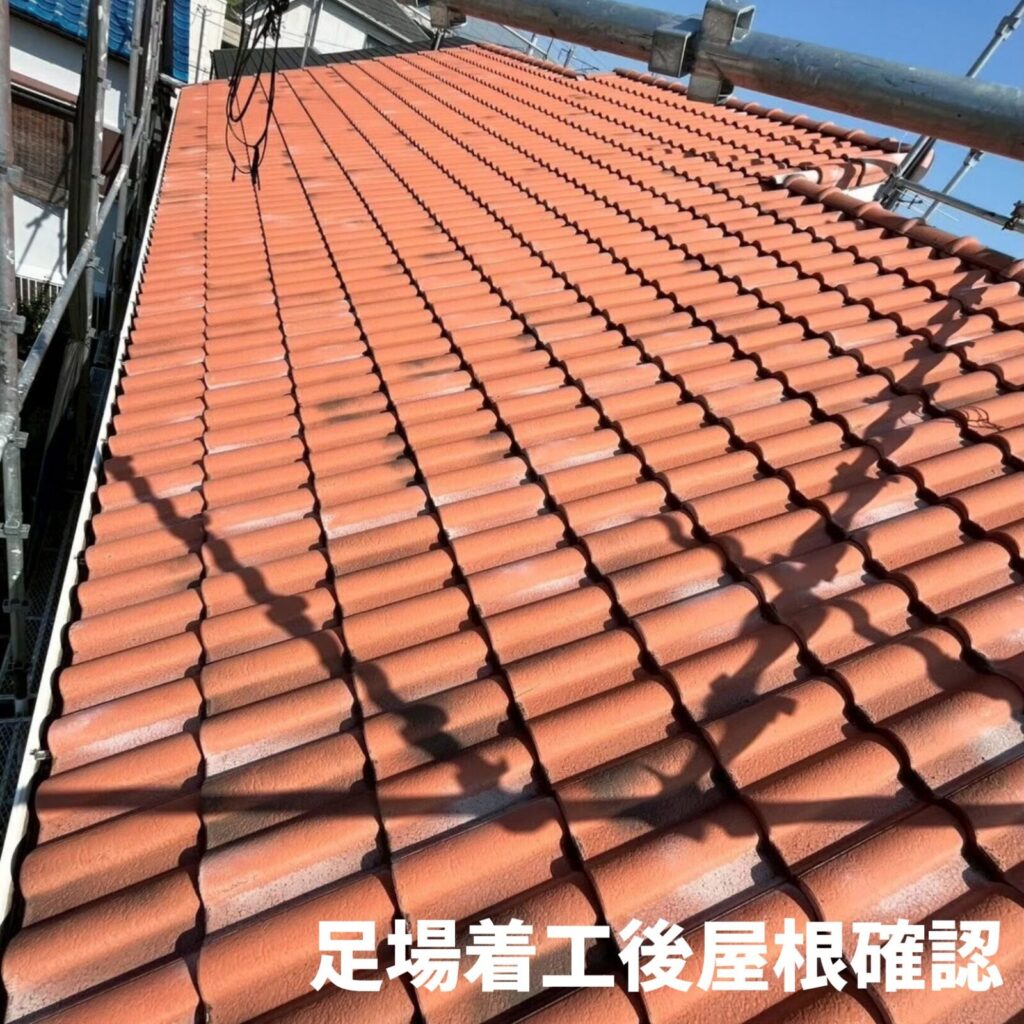 《足場着工後の屋根確認》