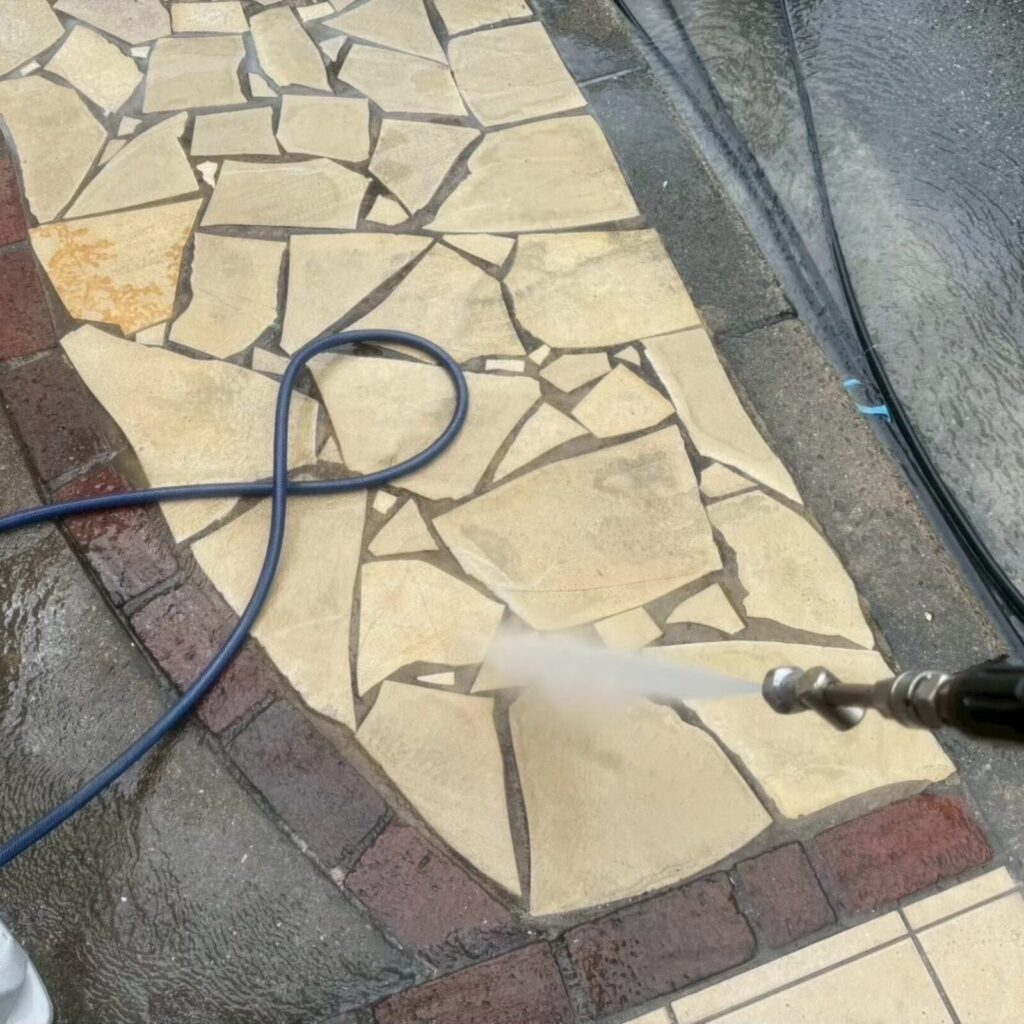 ➡カビ、苔、藻‥既存の塗装面に付着した汚れを洗い流す作業です。📝
