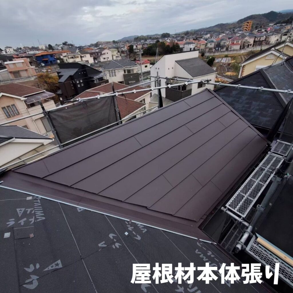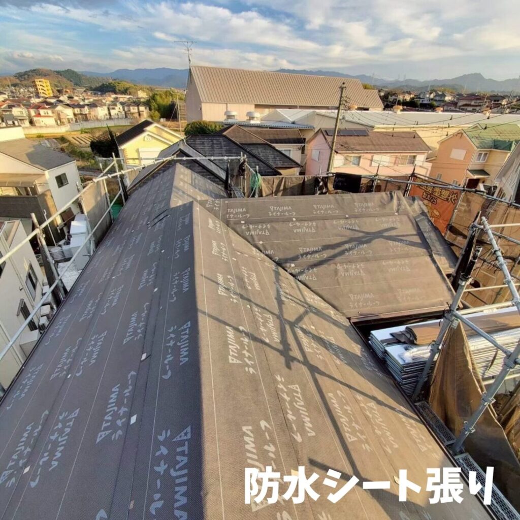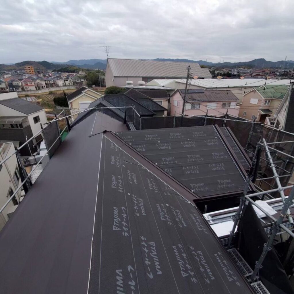 既存の屋根の上にルーフィング(防水紙)を貼り、その上に軽い金属の屋根を張ります。