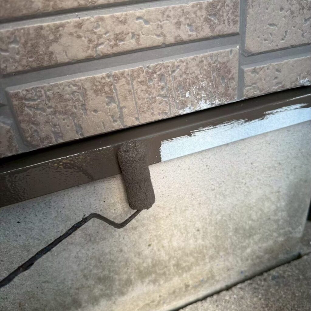 上塗りと同じ塗料を使い、色ムラや艶ムラを防ぎます。