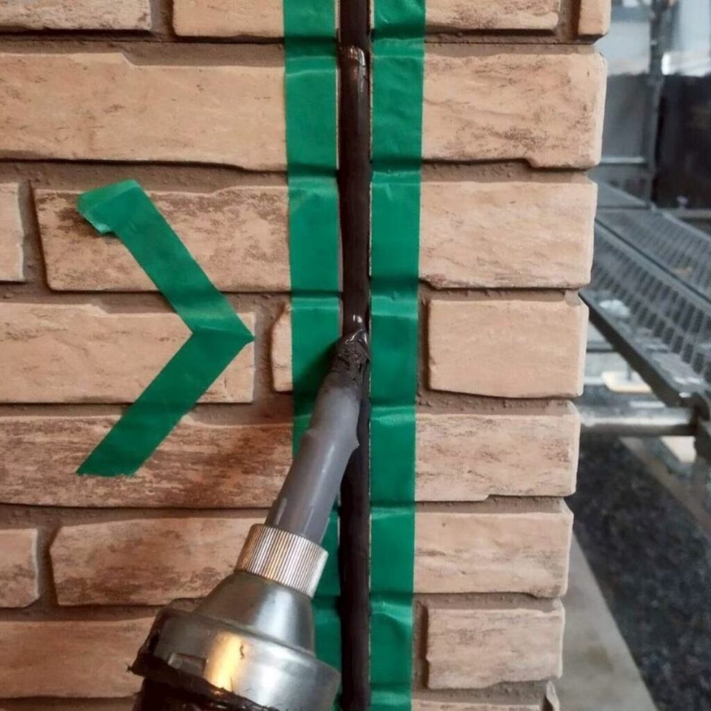 ➡「建物の外壁ボード間のつなぎ目」や「外壁とサッシの隙間」など、動きの多い目地または隙間などに高度の防水性・機密性等を確保することを目的とした工事のことです。