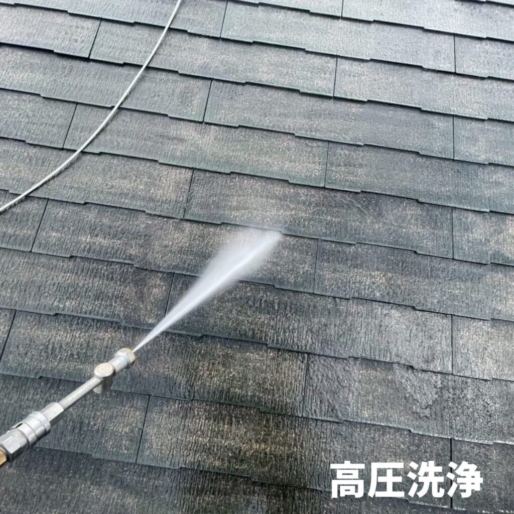 ➡カビ、苔、藻‥既存の塗装面に付着した汚れを洗い流す作業です。📝