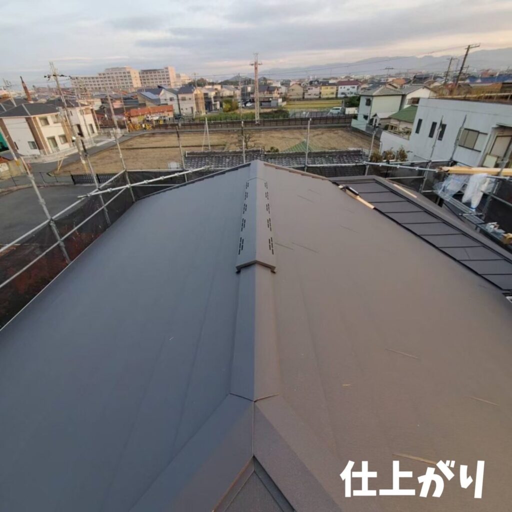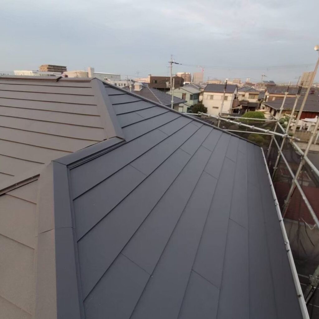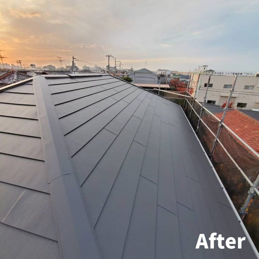 塗装よりも長持ちし、既存の屋根の解体や処分する手間がかからないので、葺き替えよりもコストを安くできる上、廃材も少ないエコな工法です。