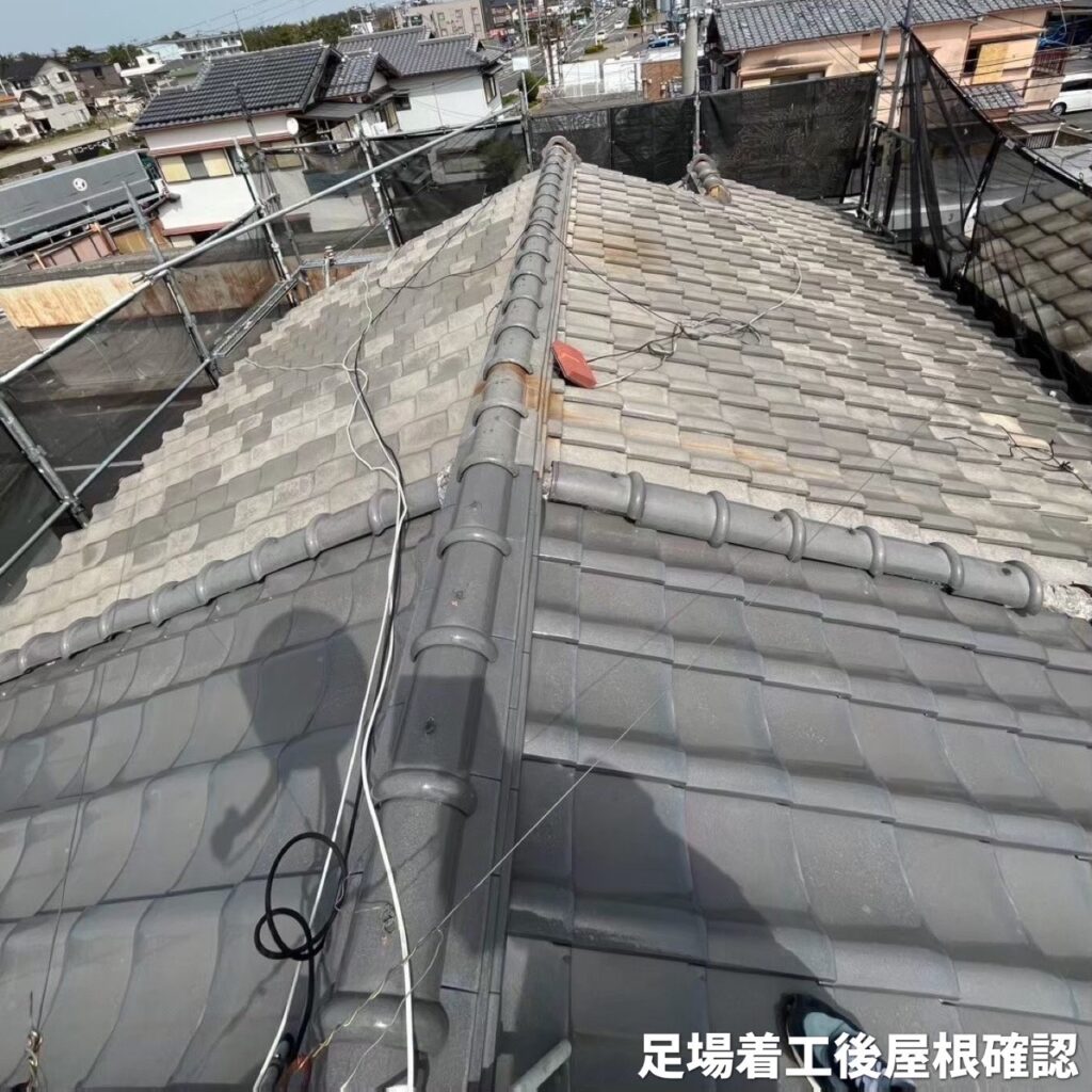 《足場着工後の屋根確認》