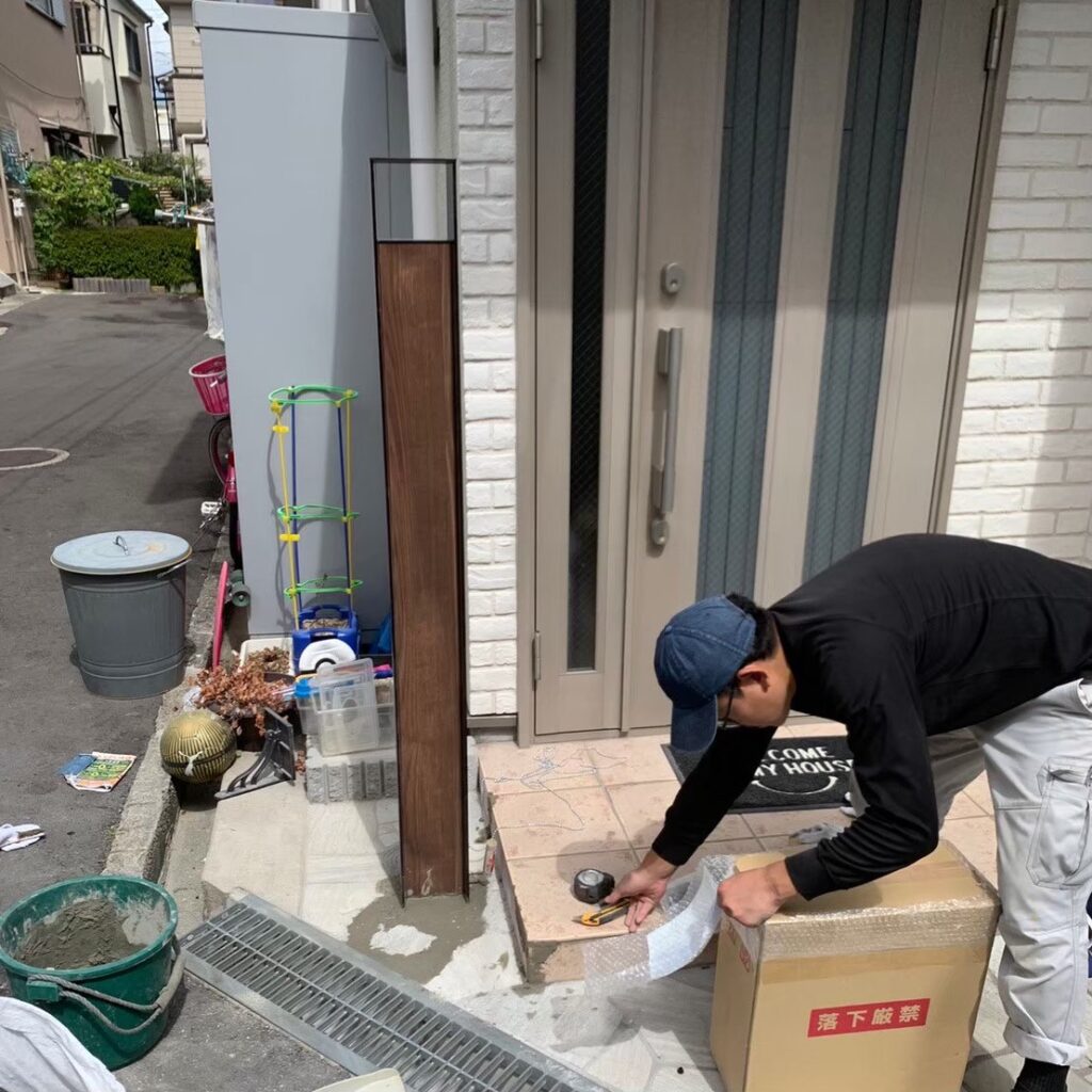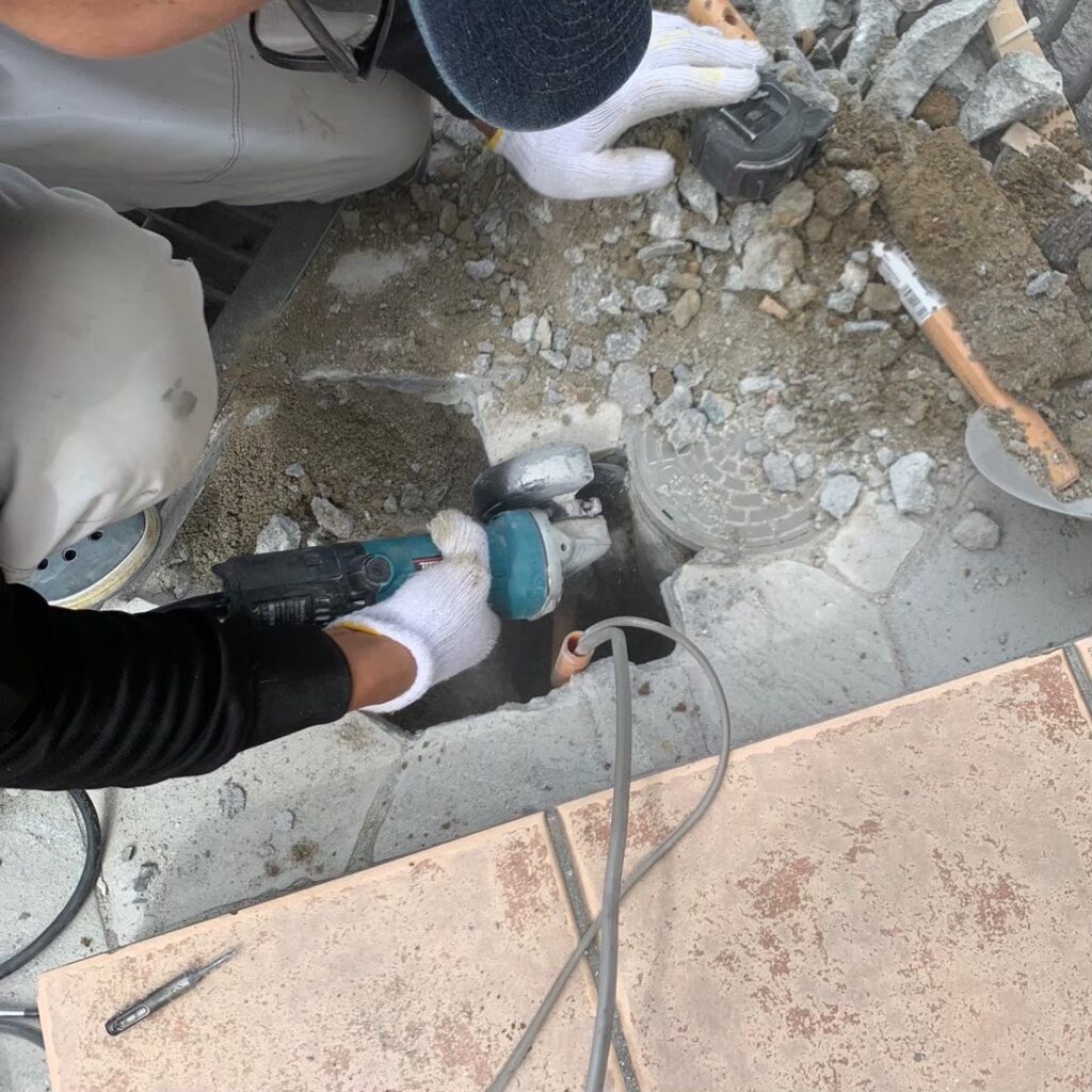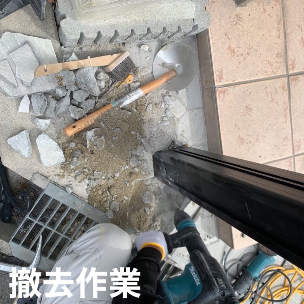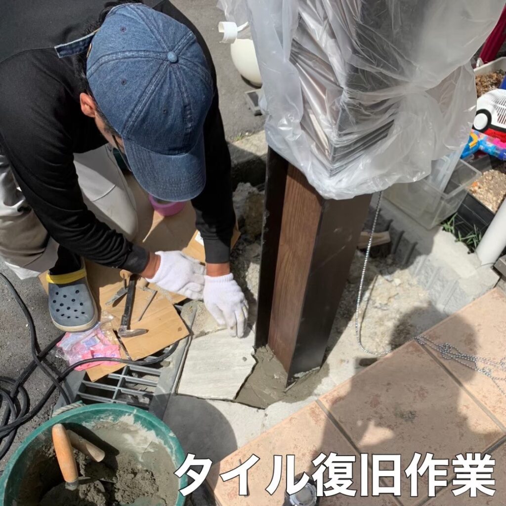 玄関前のタイルを一旦解体してからポールの入れ直しを行い、最終タイル復旧を行いました。